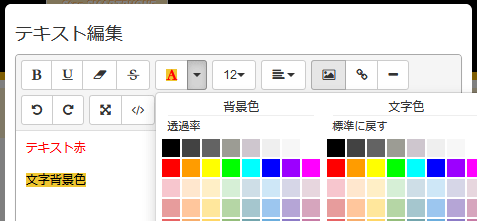文字にカラーや背景色をつけることが可能です。